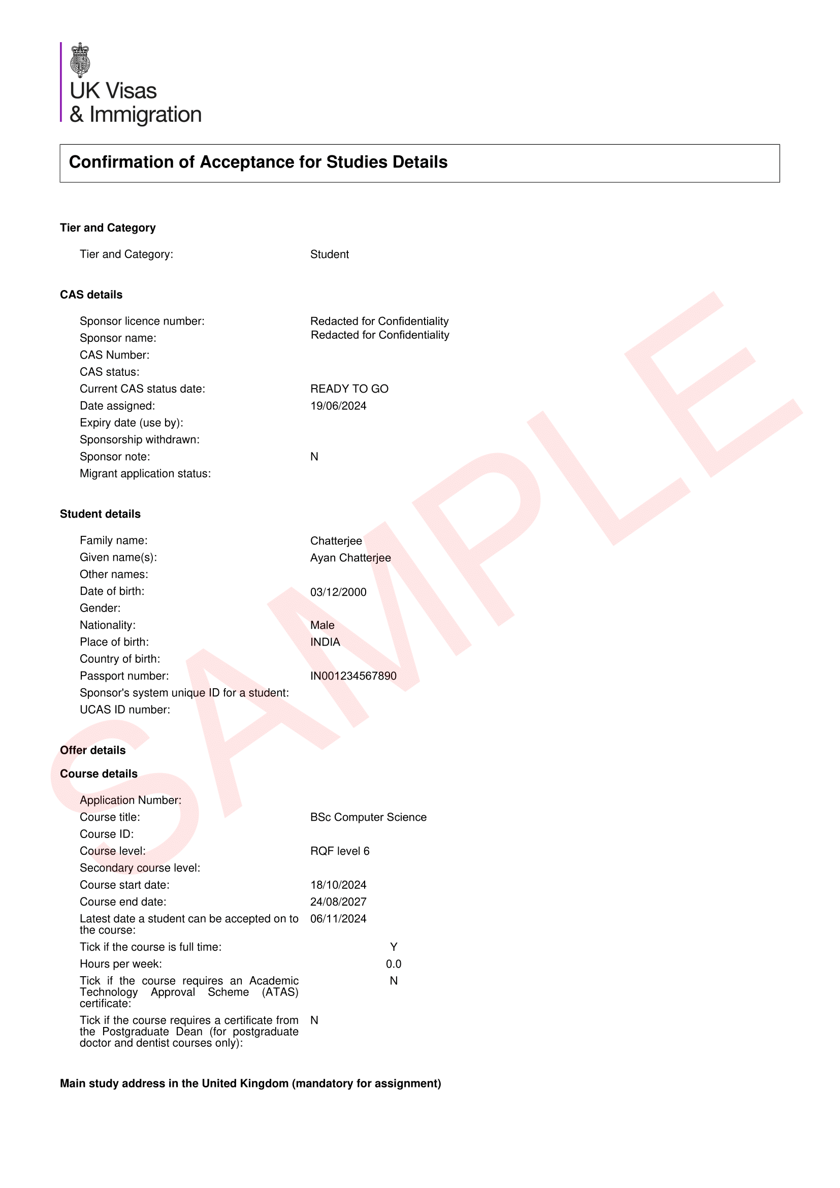 - Verification by UKVI: The CAS number allows UK Visas and Immigration (UKVI) to verify your course, fees, and personal details against their records.