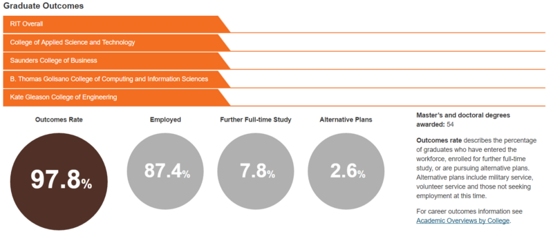 Not many colleges are able to speak and showcase their graduate student outcomes as confidently as RIT