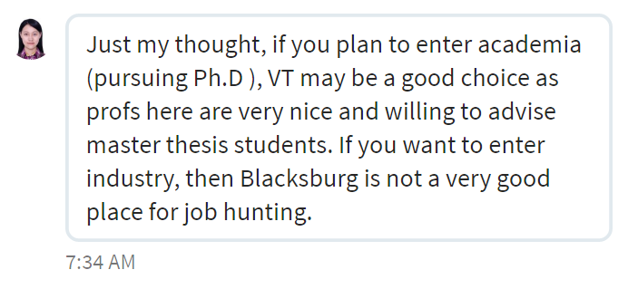 Blacksburg is not a good place to hunt for jobs as per my chat with an IE grad from Virginia Tech