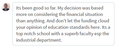 The curriculum and course evaluation is something that I hadn’t done much before applying for these universities and I cannot emphasize enough on doing this for taking your final University selection decision. After thorough evaluation of Graduate courses of TAMU, I realized that the course is inclined towards Operations research and Supply chain; something that I am not planning to forge my career into. Thus, all the rankings and low cost benefits it provides would not matter to me since the courses offered are not in alignment with my interests. My interests are quite varied too -Manufacturing, Production systems, (maybe statistics), lean and also renewable energy. Both V.Tech and RIT have specializations that I am looking for.
