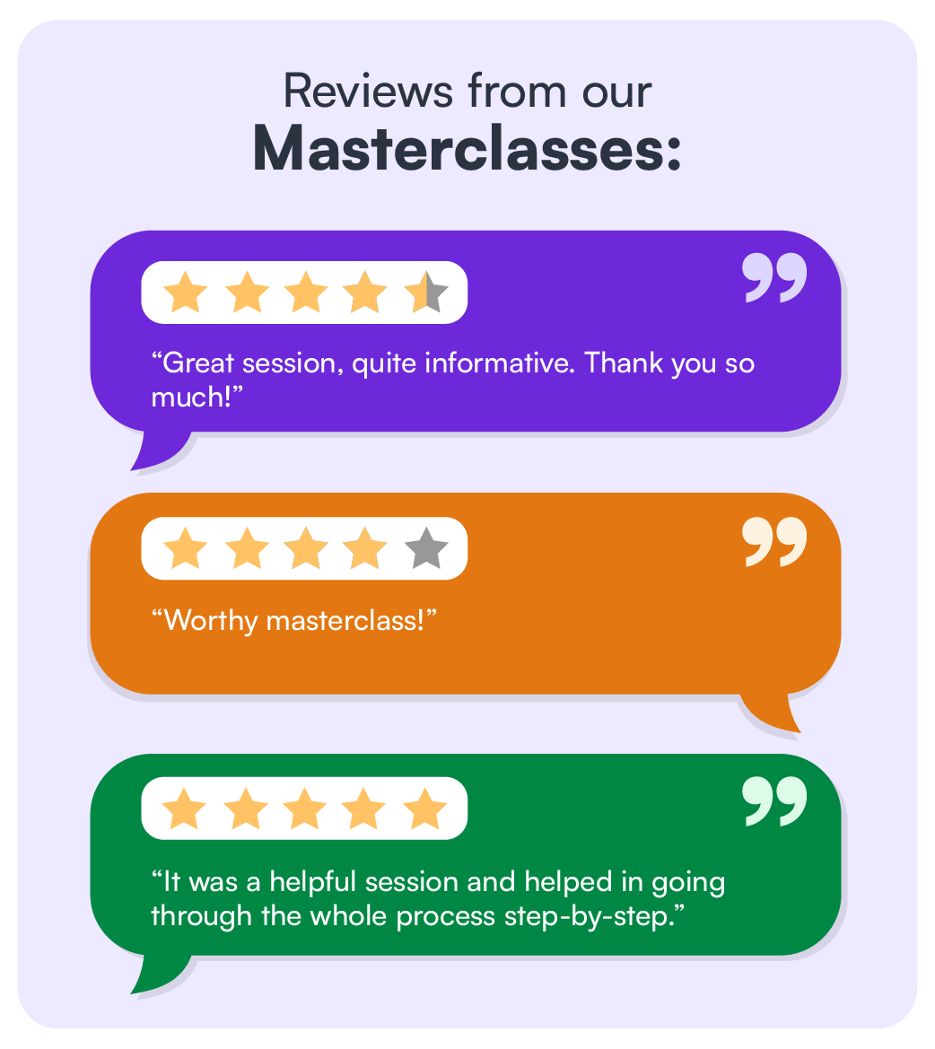 Over 90% of our masterclass attendees rated our masterclass 9+ out of 10!